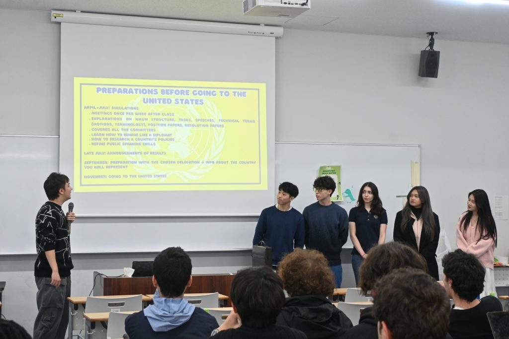 During the meeting, members of the TISS student delegation who represented the University of Tsukuba at NMUN DC 2025 delivered a presentation. They reported that participating in NMUN DC 2025 had been an invaluable and amazing experience.*
